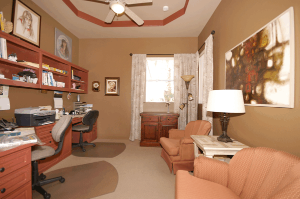 Den can be used as bedroom with installed plantation shutters.